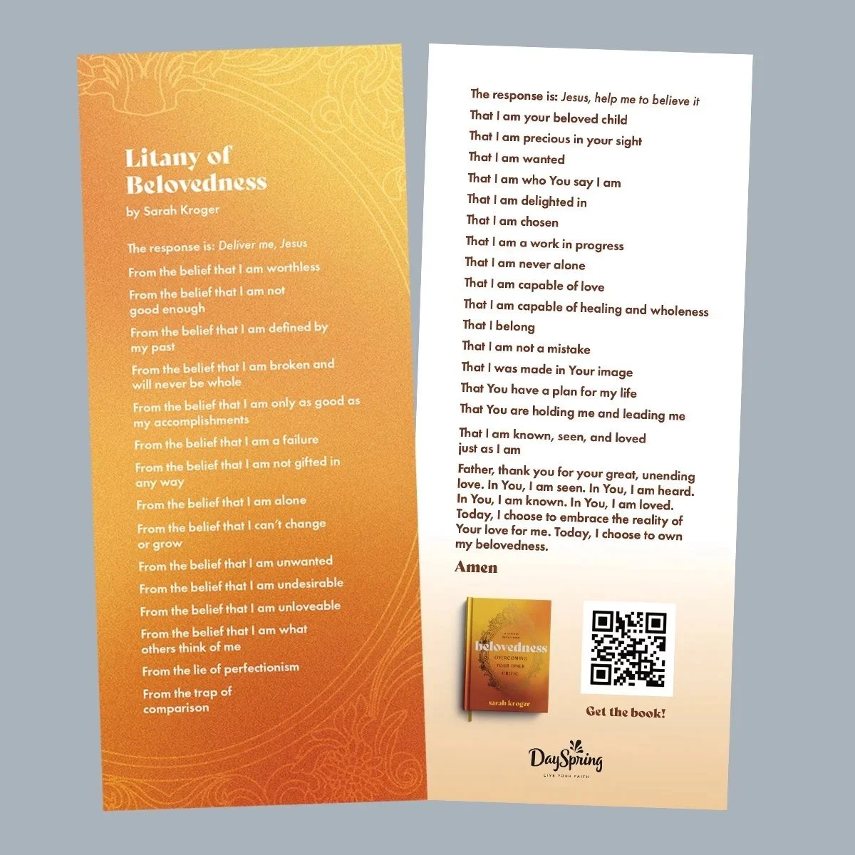 The litany is a prayer composed by sarah surrounding her book titleD belovedness: overcoming your inner critic.
